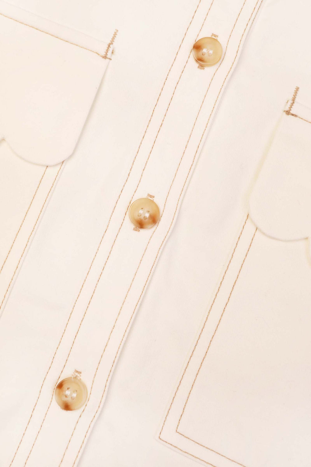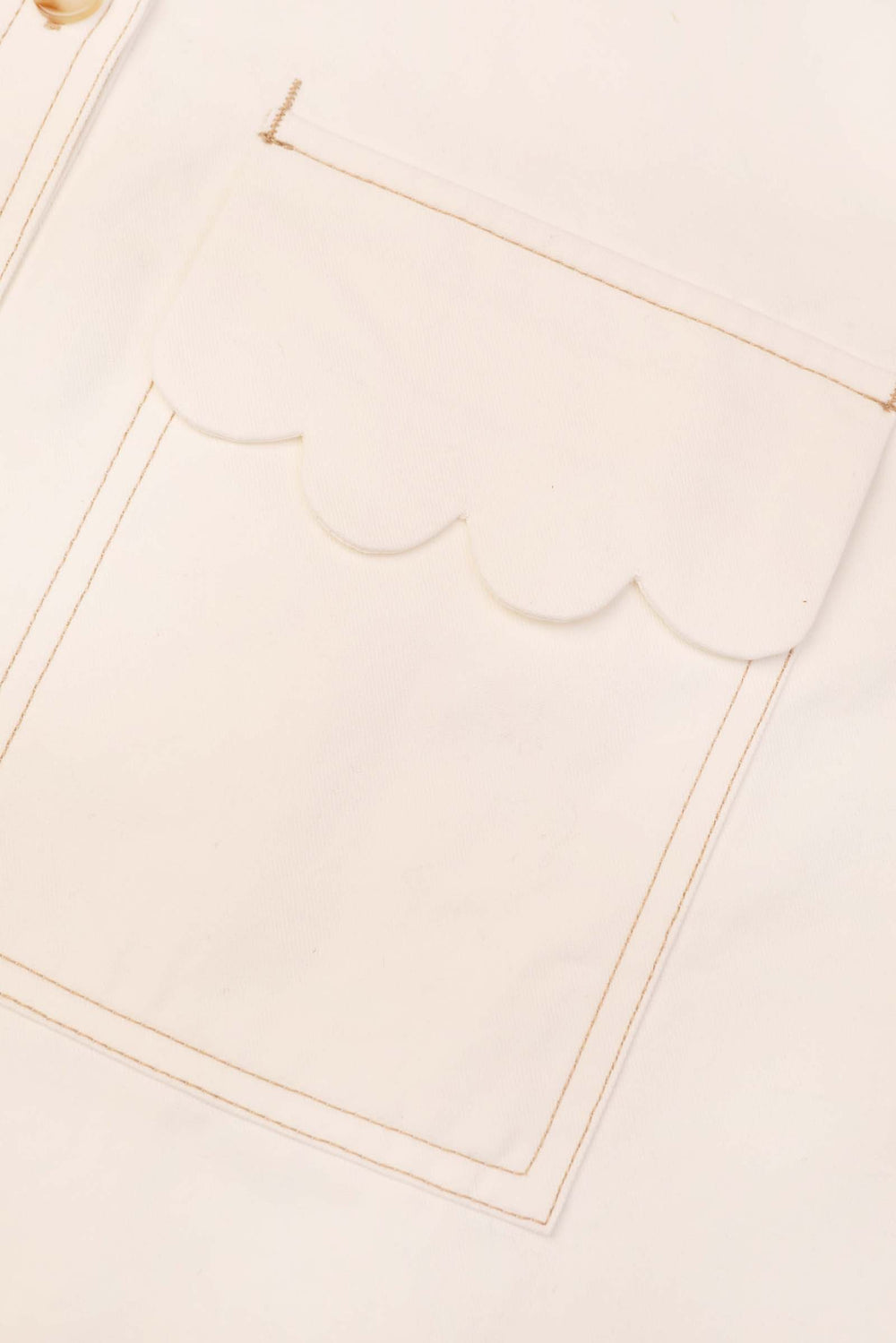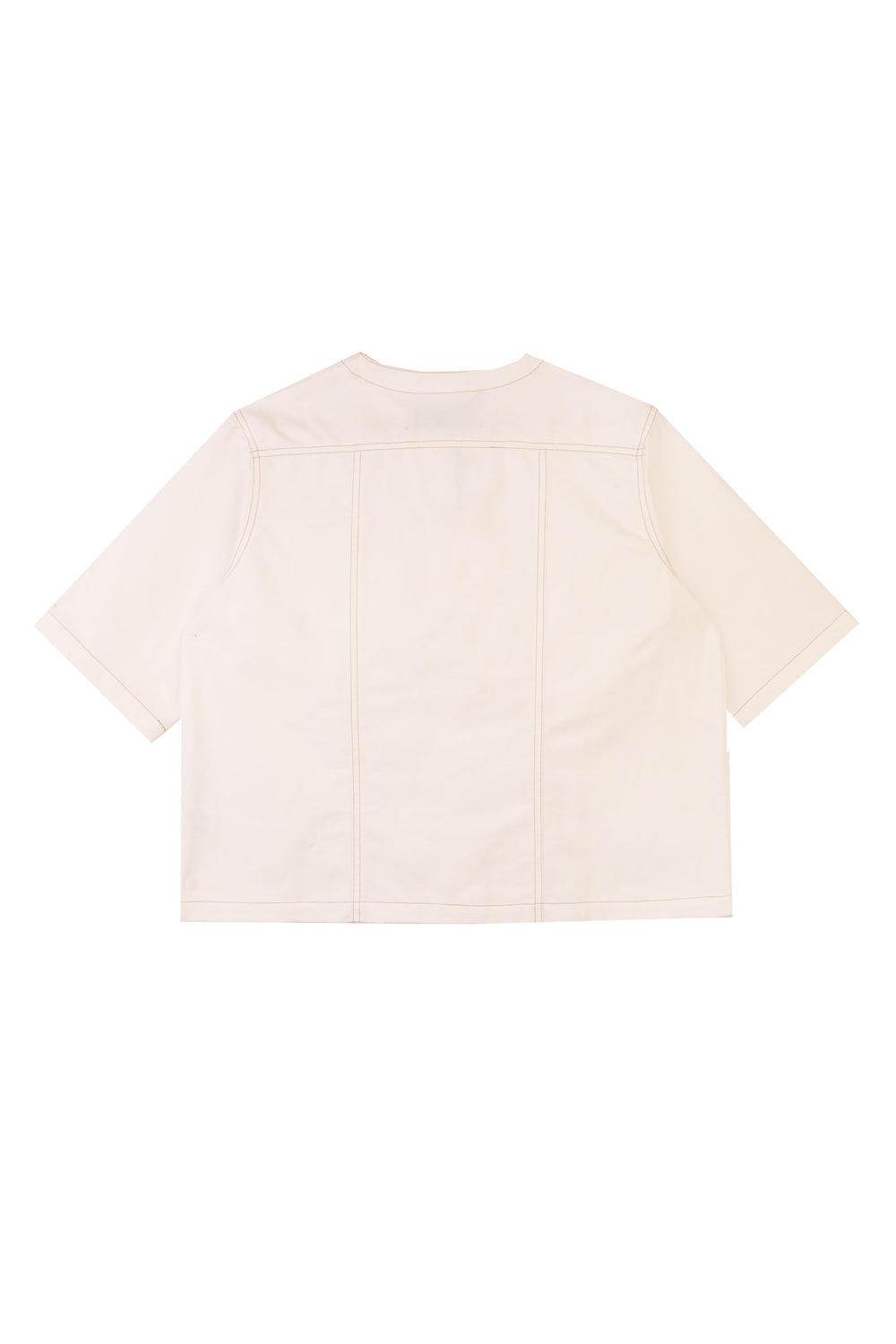 Square cut. Cotton twill. White shirt. Contrast stitching.