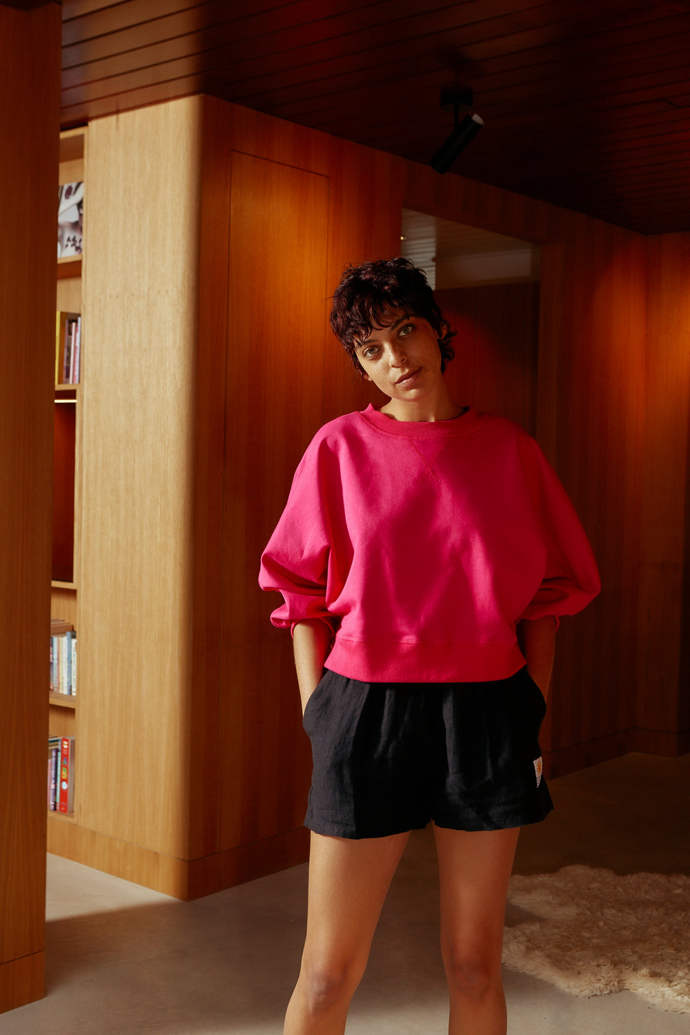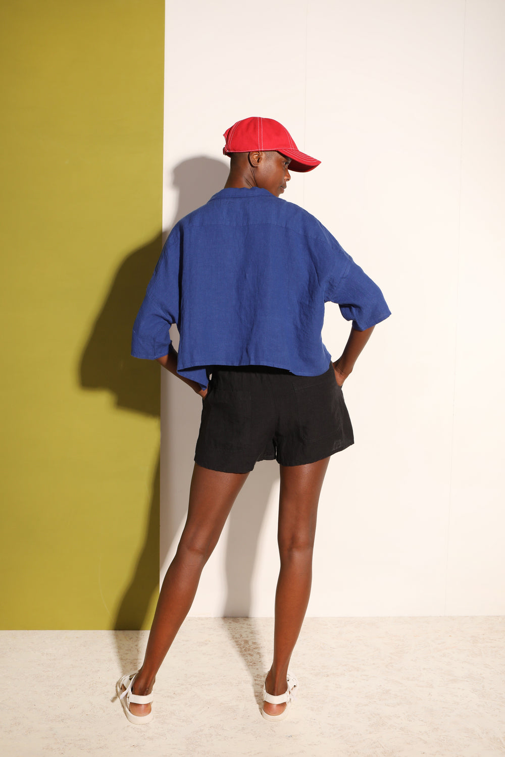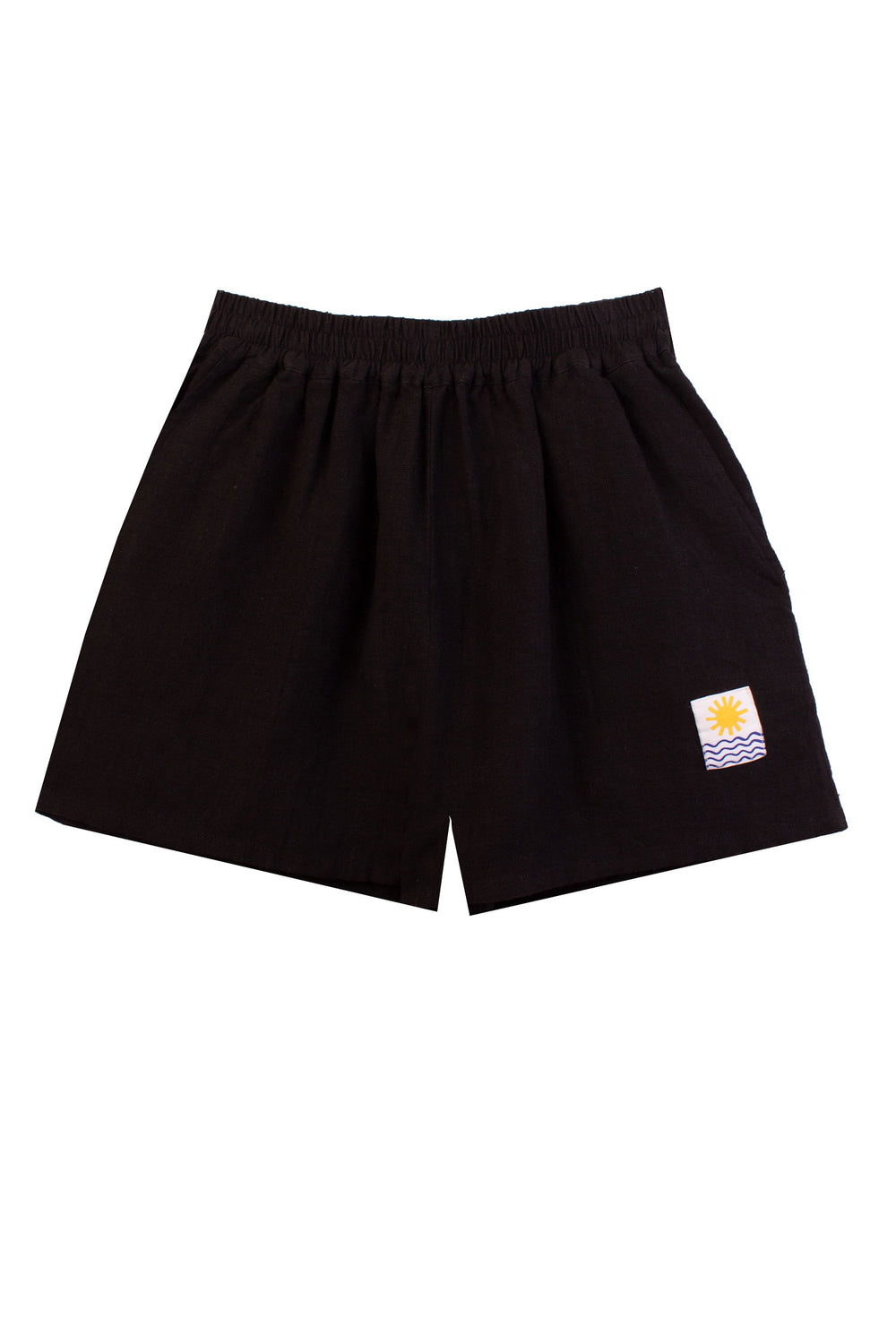 Linen shorts with an elasticated waist, side and back pockets. With our signature sun and wave woven patch on the left leg.