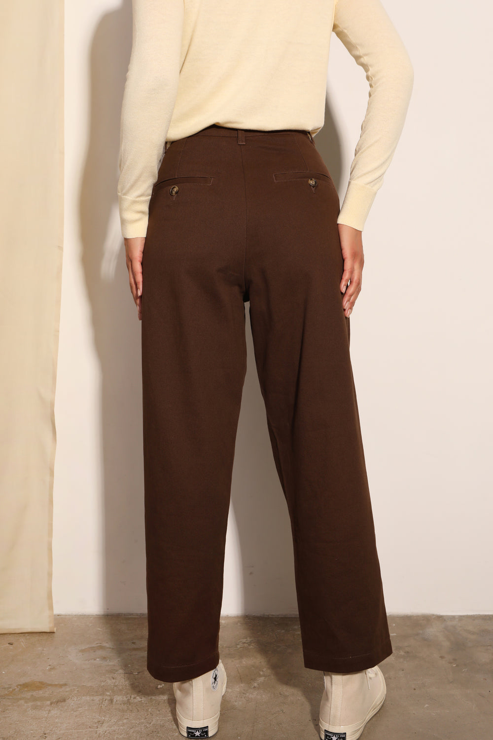Our bestselling unisex Classic Slacks now in Coffee. Lightly tapered, cropped leg with pleats at the front to add volume. Darts at the back form a clean line over the derriere.