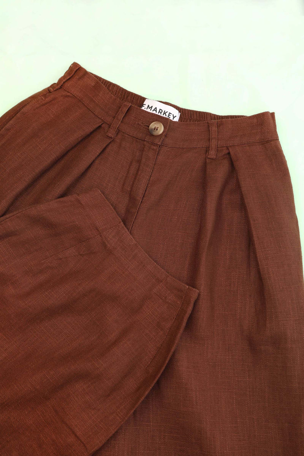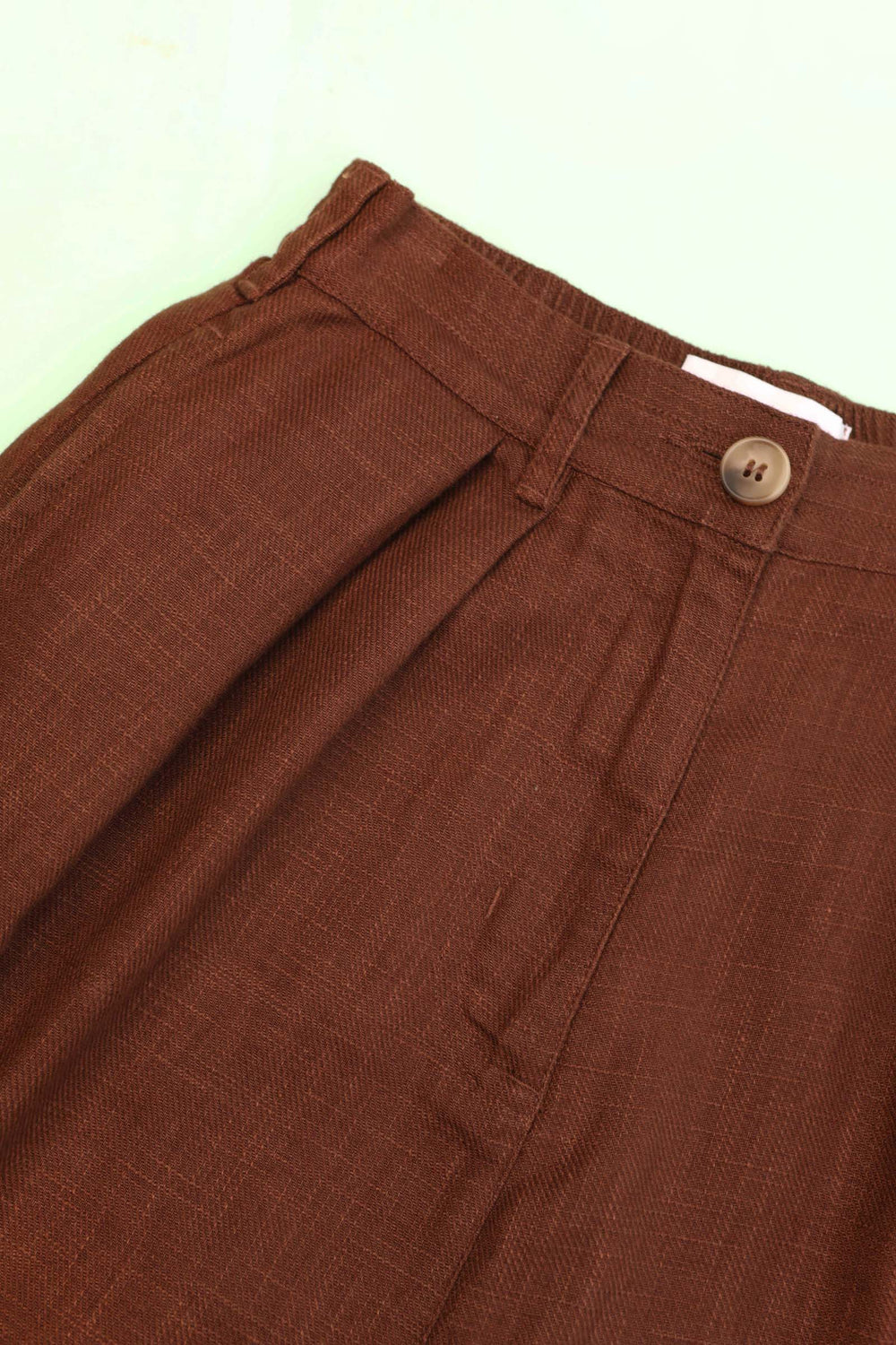Our popular Jenkin Trousers now in a linen cotton twill blend. Featuring pleats at the front to add volume, tapered with our signature darted hem. Deep side and back pockets.