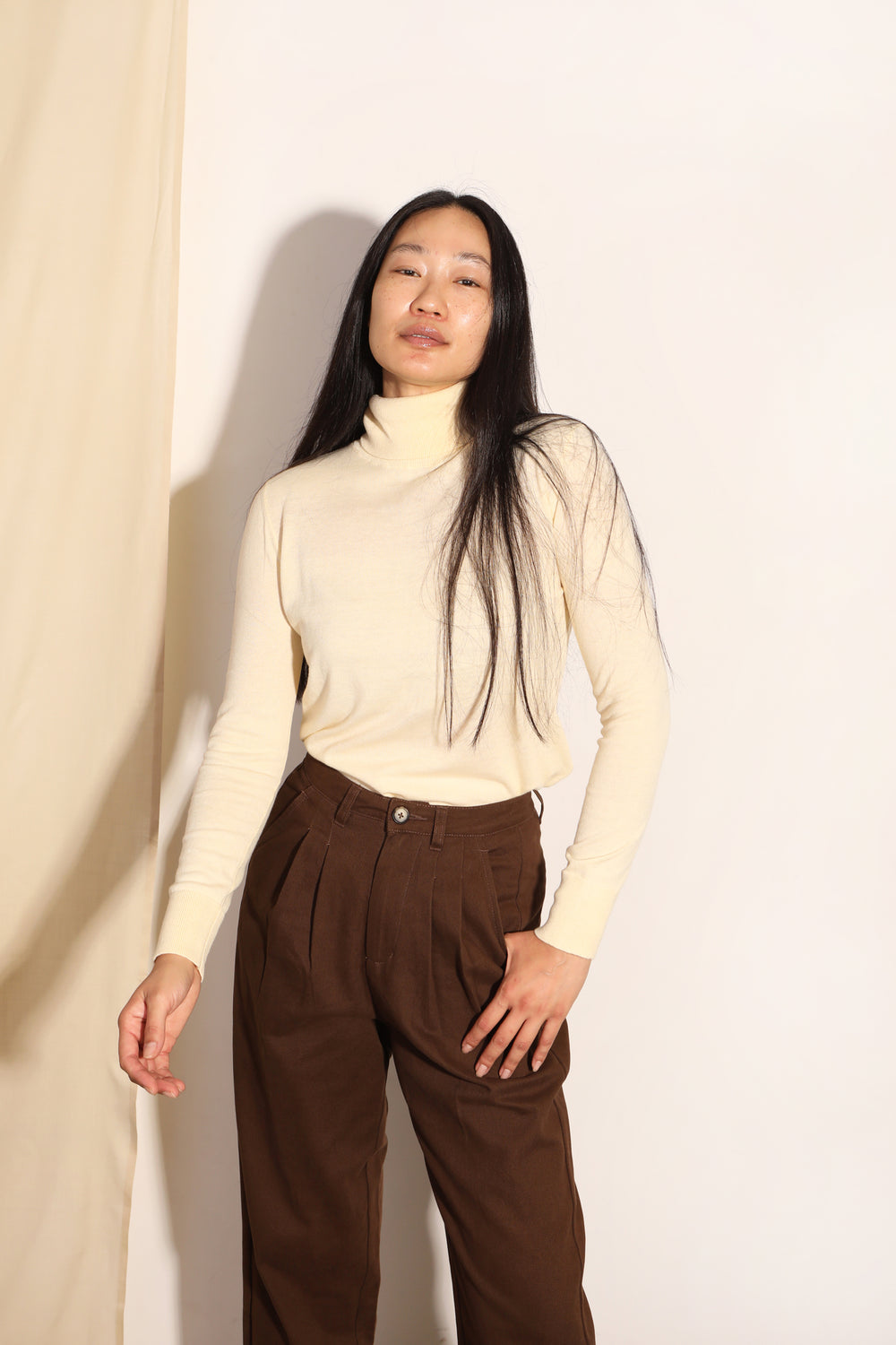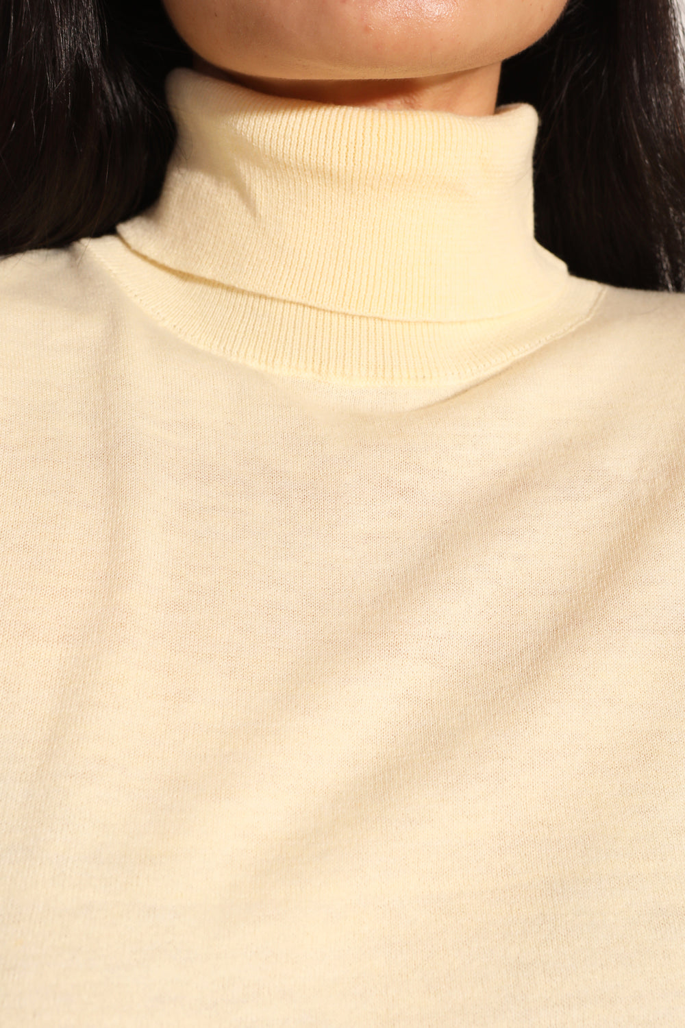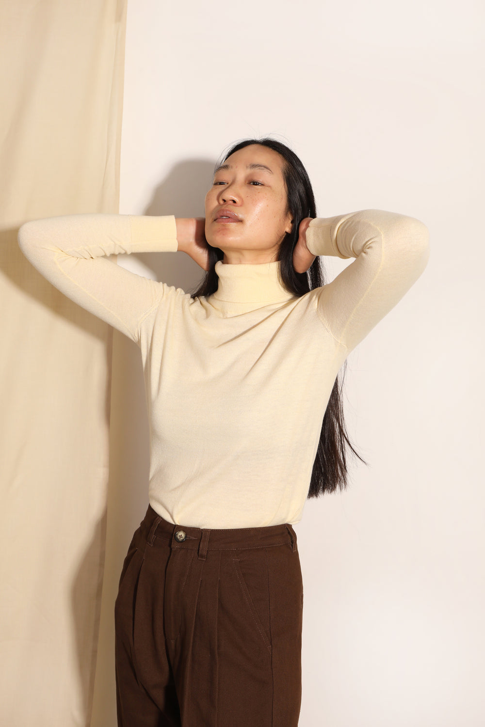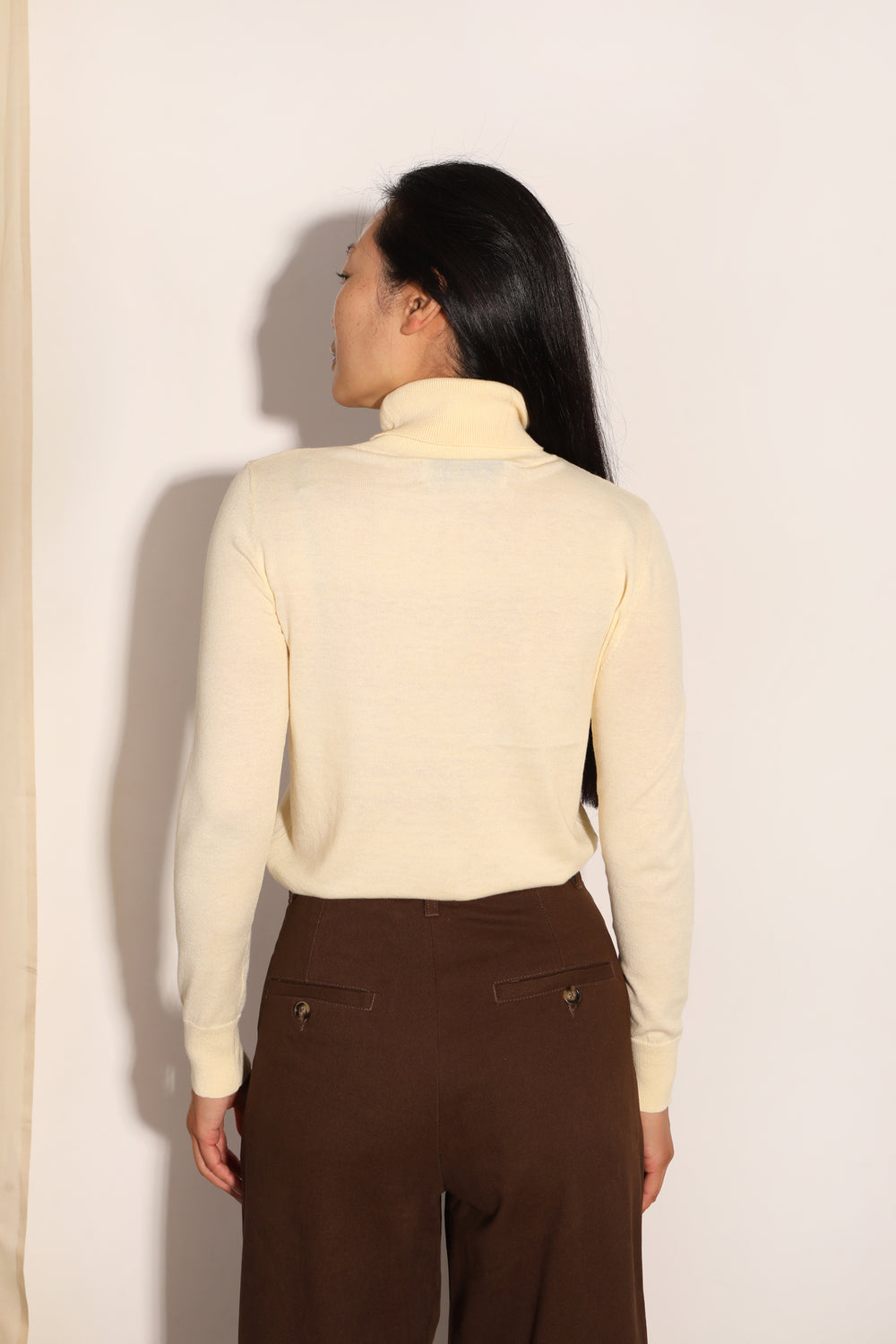 This fine-knit top features a high turtleneck with long sleeves, finished with ribbed edges. A slim-fit silhouette makes this the perfect layering piece.
