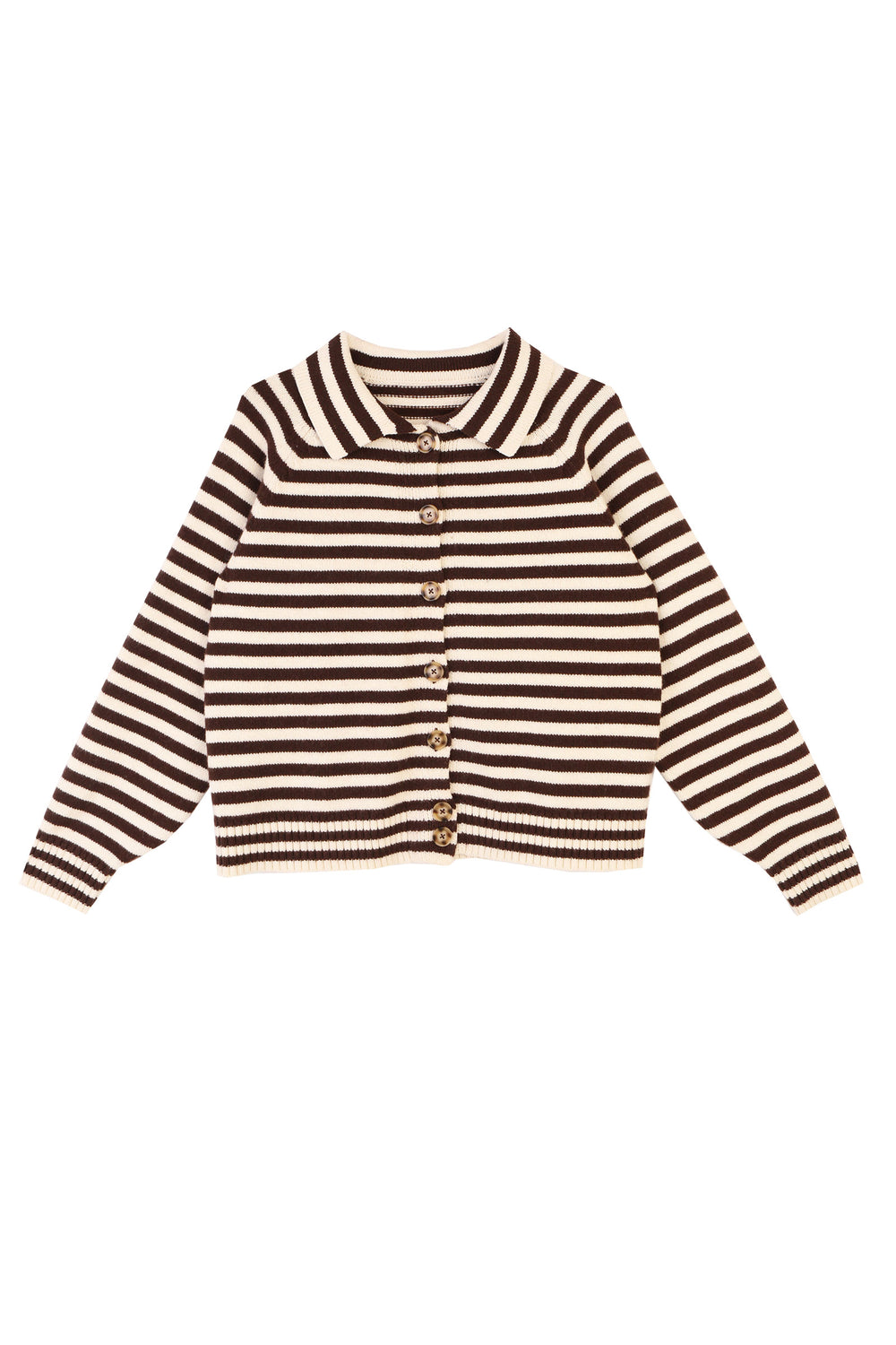 Cardigan. Wool. Wide-spread Collar. Stripe.