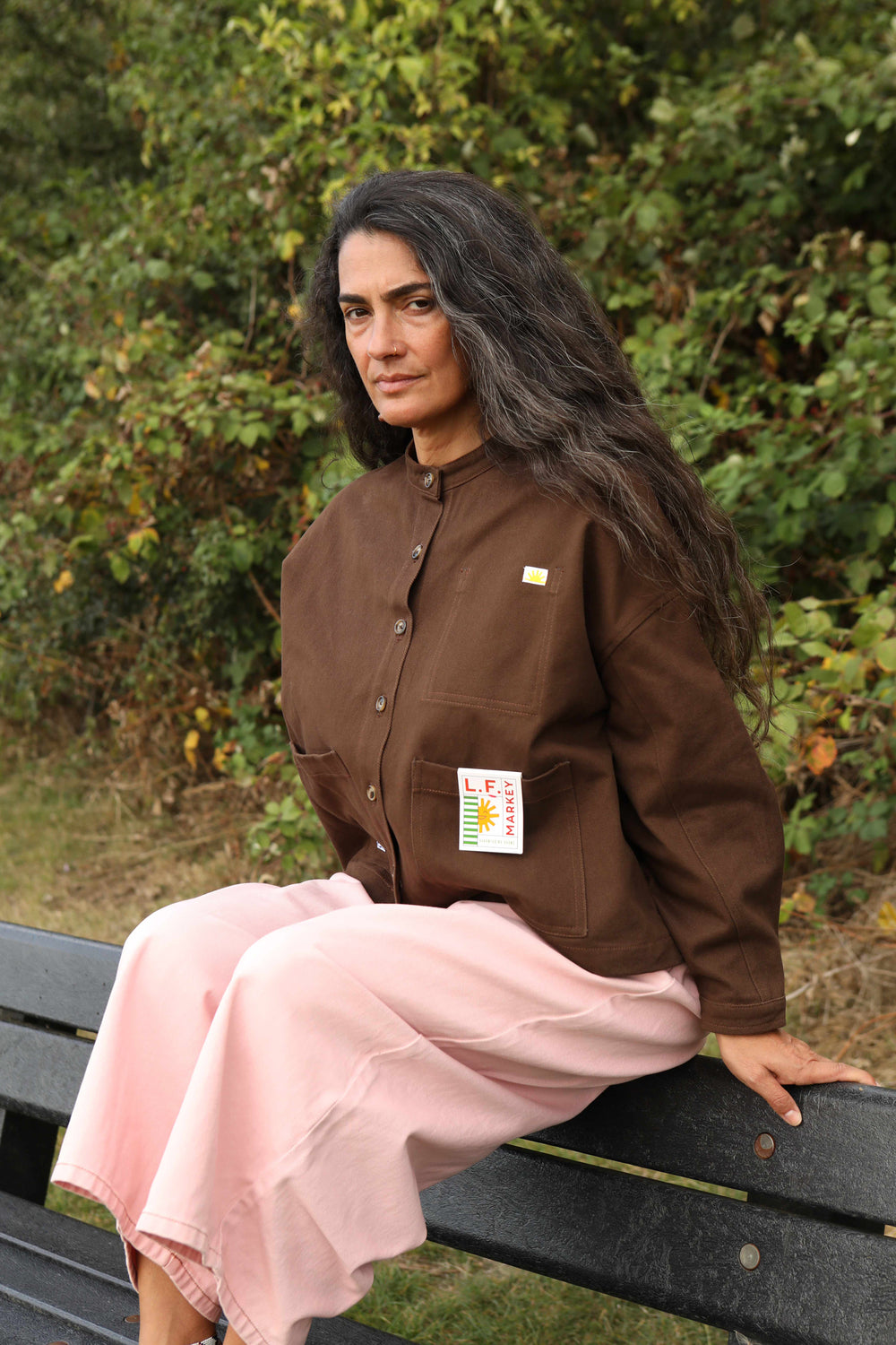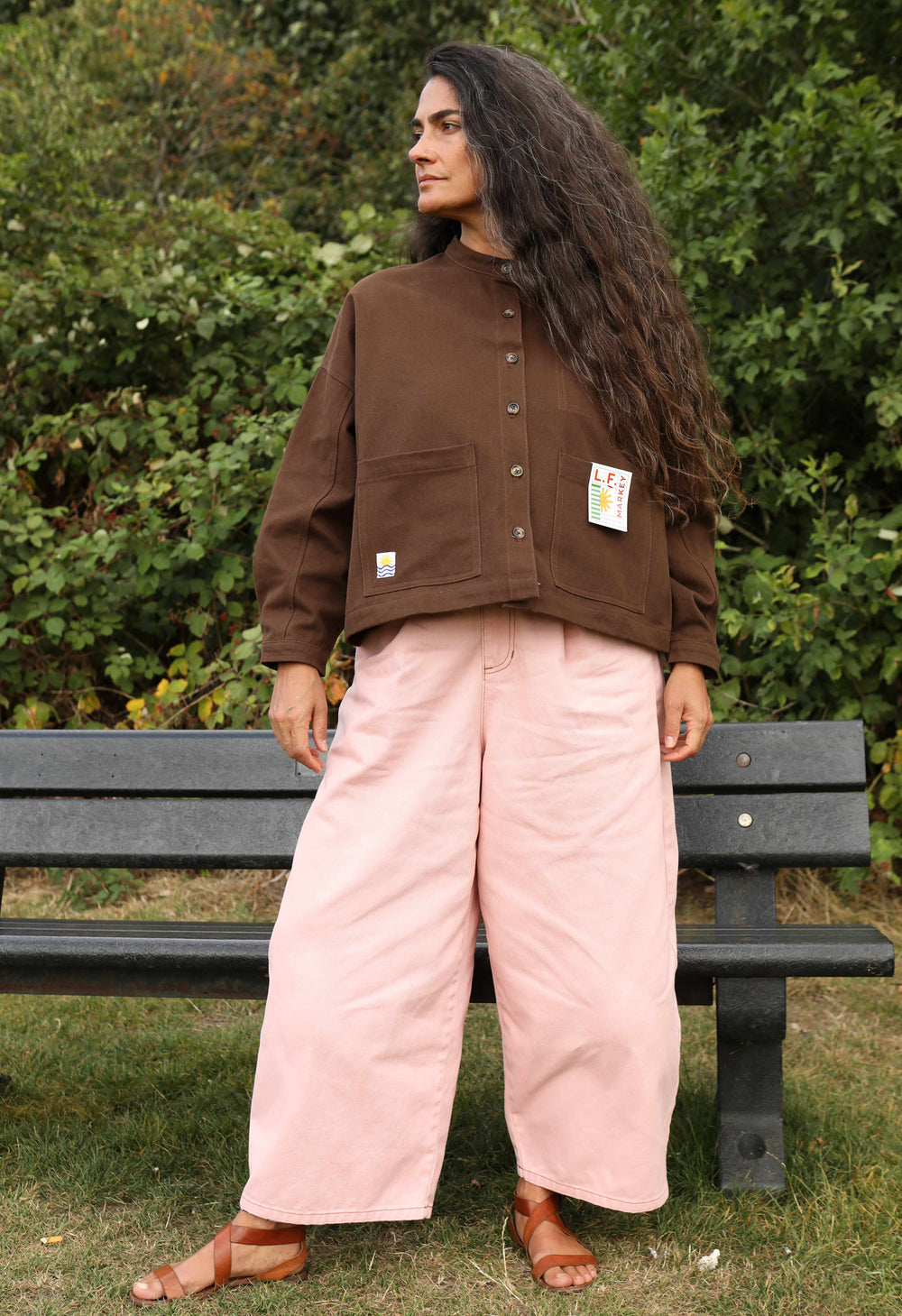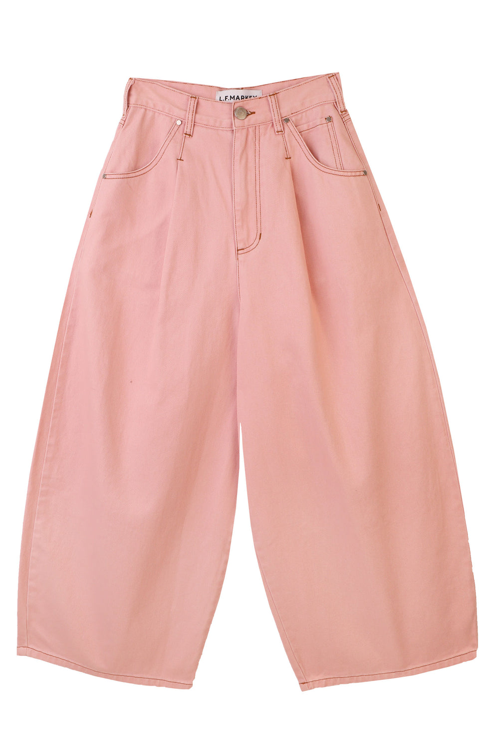 The Mason Jean is a balloon shaped, ankle-length jean with a high pleated waist. Crafted from cotton denim with contrast ochre topstitching and matte silver rivet detailing on the pockets.