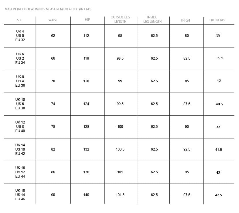 Model is 5'7" / 170 cm and is wearing a size UK 8. We have designed this style with a fitted high waist and voluminous legs. We would recommend sizing up for a more relaxed fit around the waist. Please refer to our size guide below for measurements.