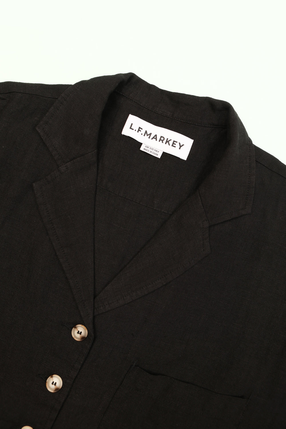 The Maxim Jumpsuit has a relaxed spacious fit, fastened with a waist tie for optional fitted structure at the waist. Crafted from a soft washed linen, with a low neck and tortoise-shell buttons down the front. 3/4 length sleeves and our signature small sun and wave woven patch.