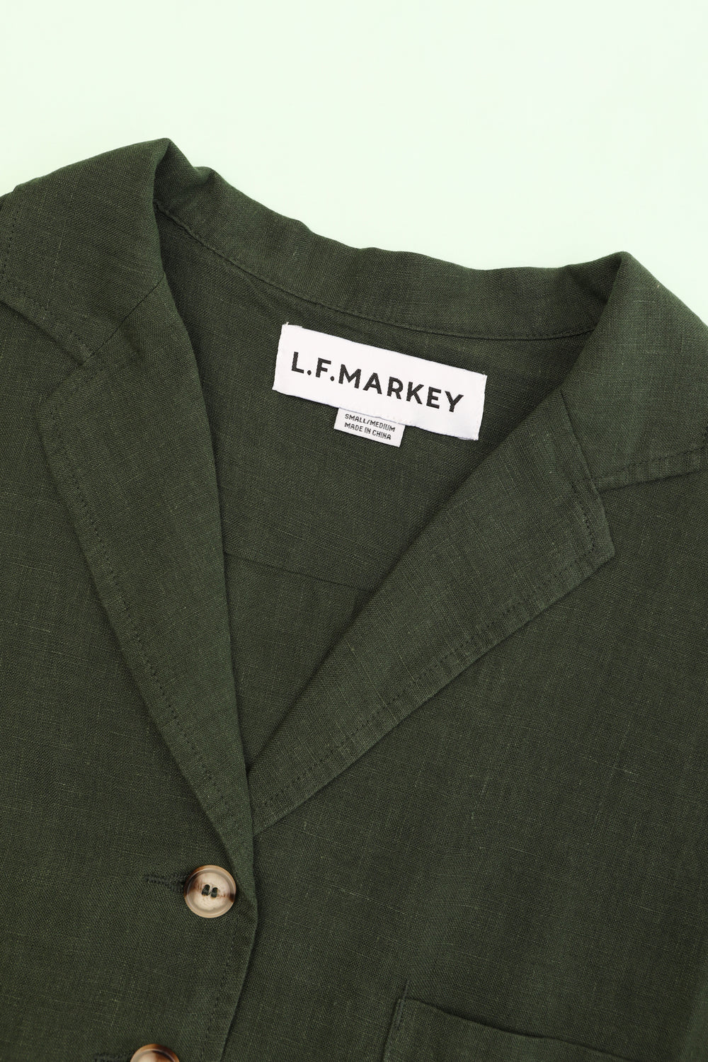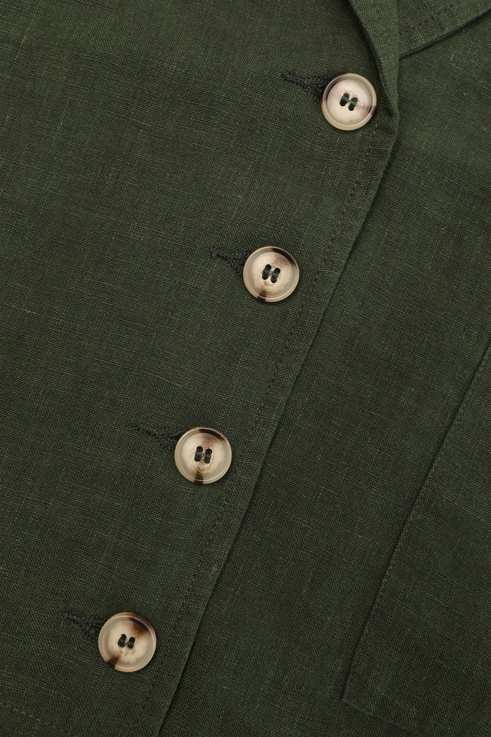 Boxy fit. Cropped. Tortoise-shell buttons. Lightweight linen. 3/4 sleeves. Large patch pocket.