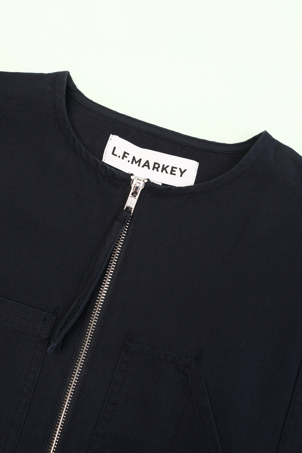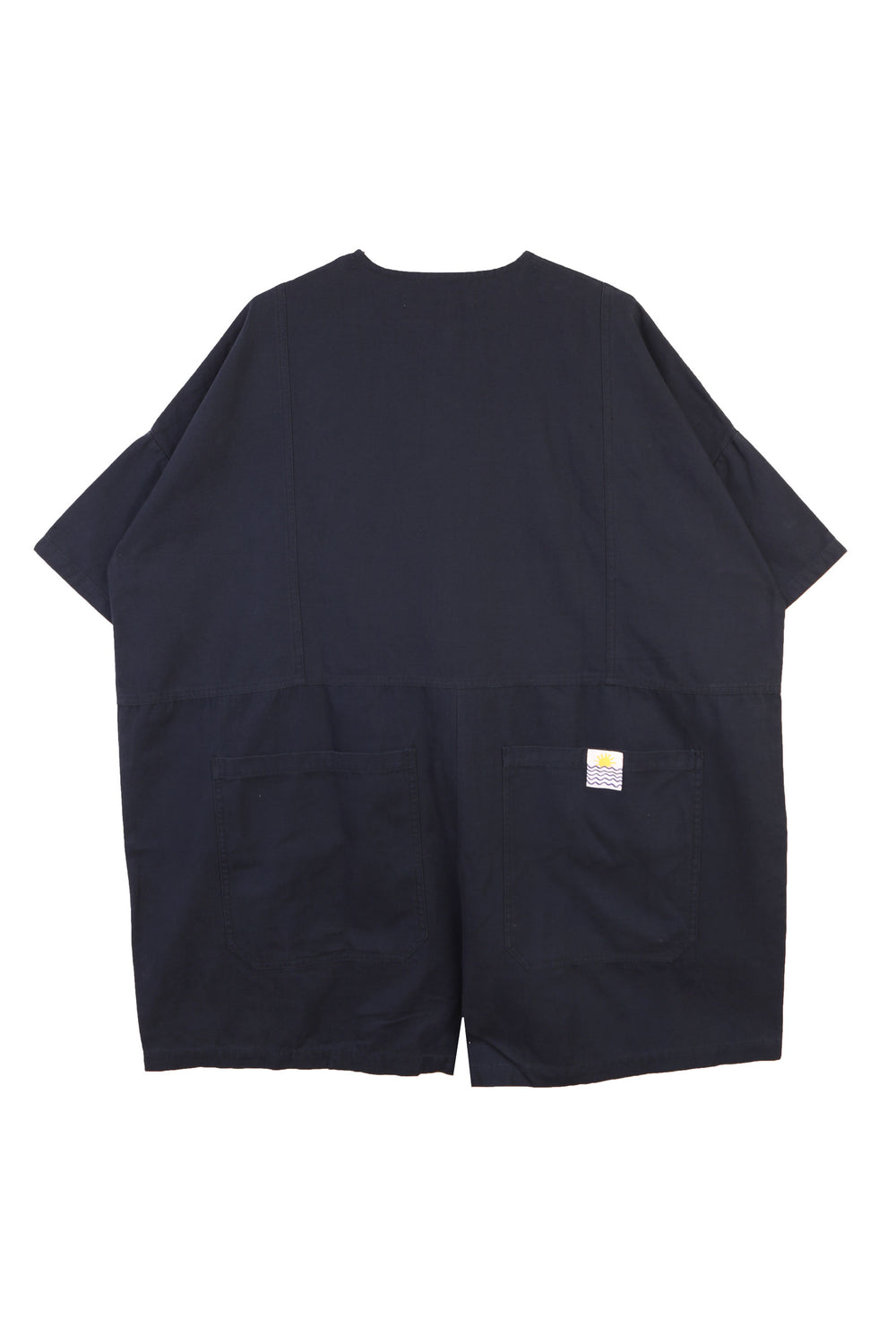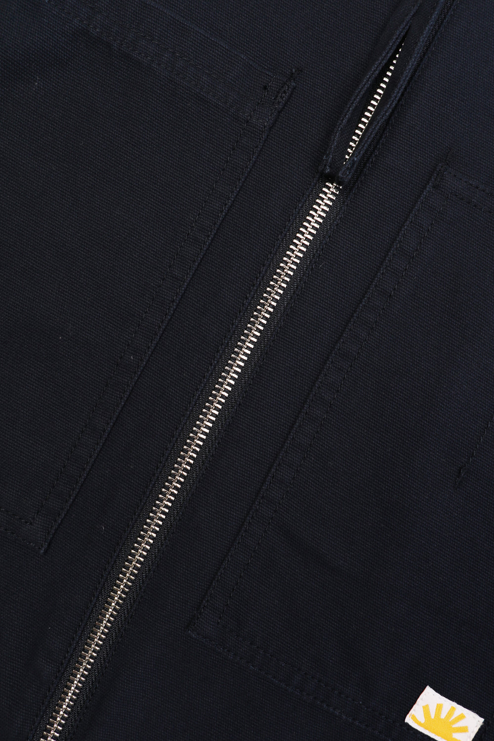 Mega oversized playsuit in navy cotton canvas. Spacious relaxed fit, with plenty of room for movement and play. Features a silver front zipper, utility style pockets aplenty and our mini wave and mini sun woven patch logos.