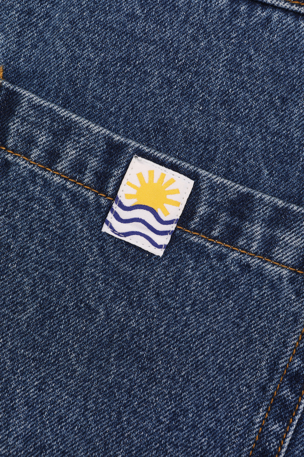 100% Cotton denim. Machine wash on a cold gentle cycle with similar colours.