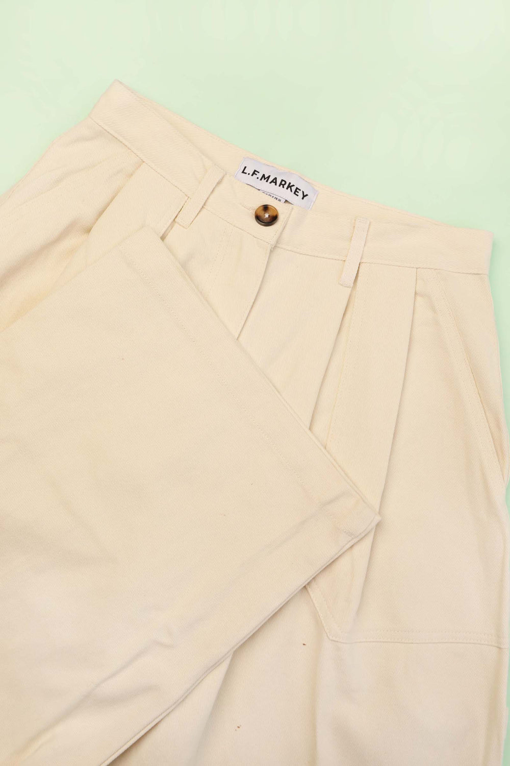 Pleats. High-waist. Spacious fit. Cotton drill.