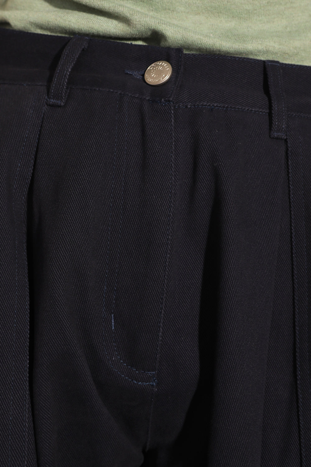Pleats. High-waist. Spacious fit. Cotton drill.